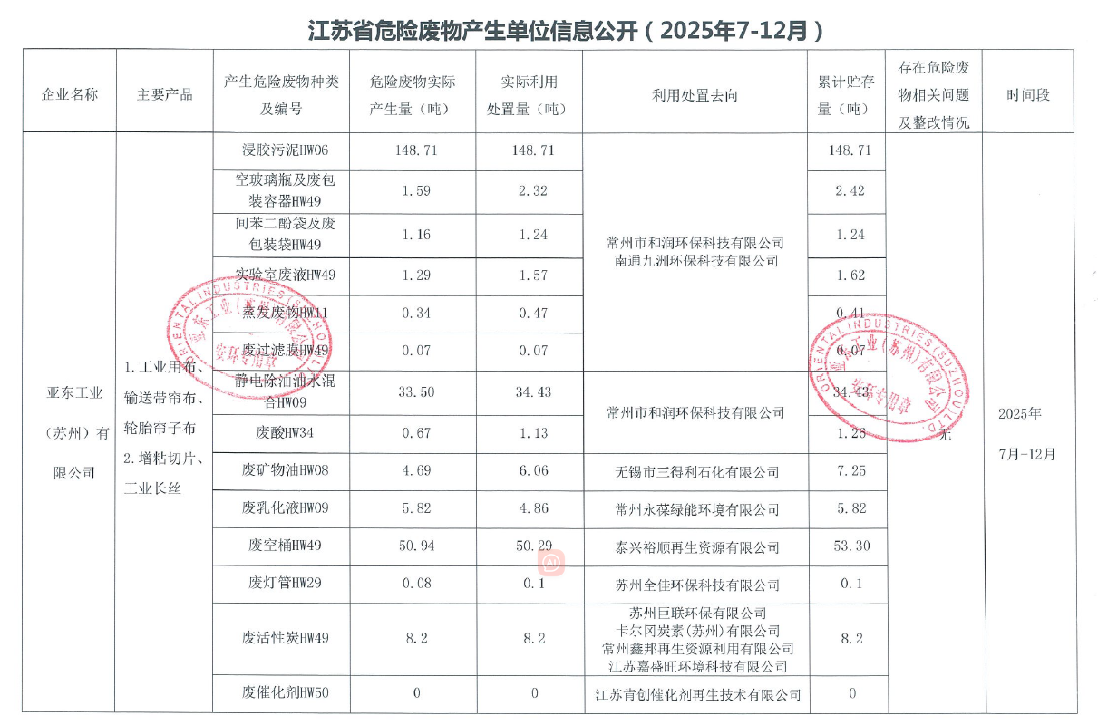 江苏省危险废物产生单位信息公开(2025年7月-12月)